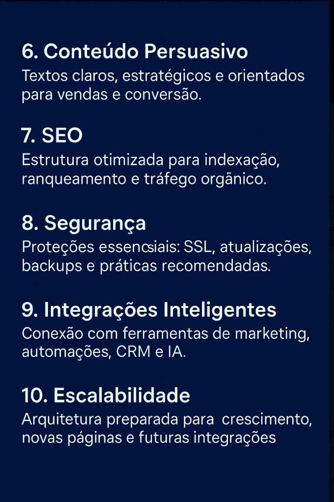 Textos claros, estratégicos e orientados para vendas e conversão.
